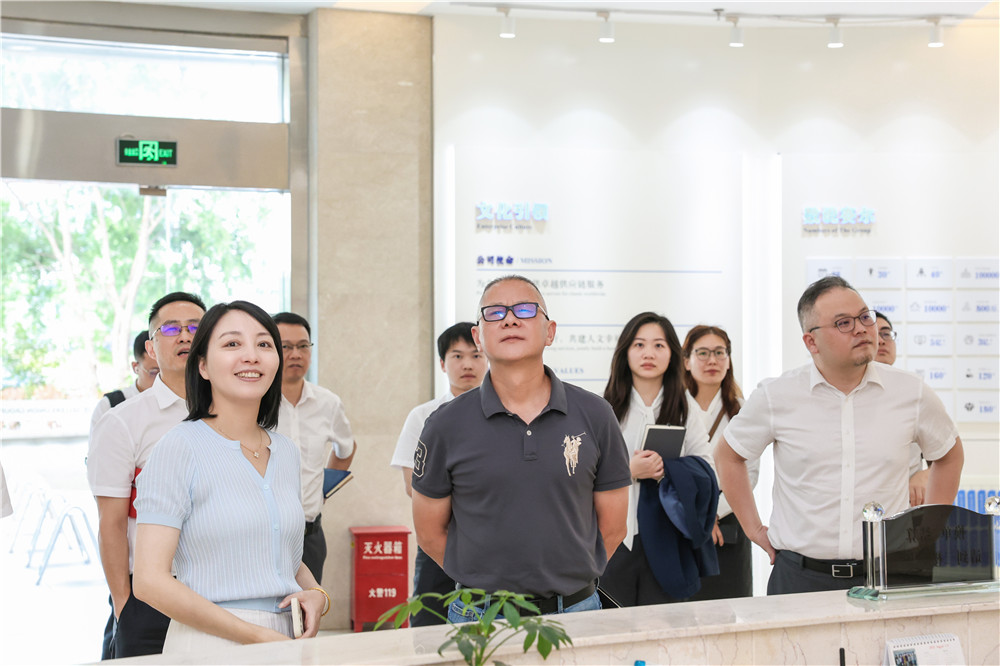 殷劍峰一行首先參觀了集團企業(yè)文化展廳,伍淑亞副總經(jīng)理詳細介紹了集團的發(fā)展歷程、業(yè)務模式、文化理念等方面,重點闡述了賽爾在全球貿(mào)易鏈條中的定位、主要業(yè)務板塊、生態(tài)圈賦能舉措以及合伙人機制的管理特色。